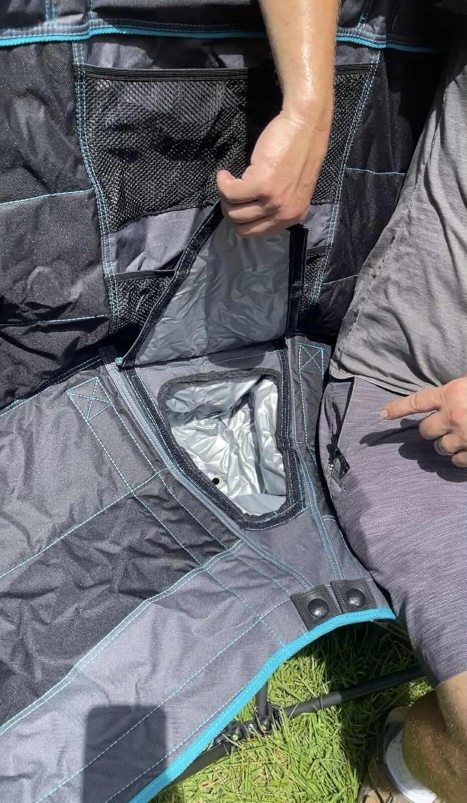 Velcro-insulated ice pack compartment keeps drinks chilled (with drainage hole for easy cleanup).
